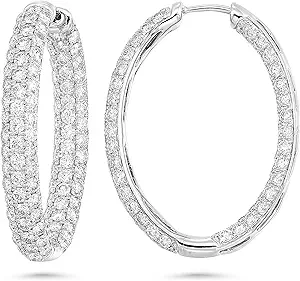 Diamond Delight 5 Carat Real Natural Diamond Classic Hoop Earrings for Women – 14k White Gold Earrings for Her with Elegant Triple Row Pave Design (F, VS1, 5.00 cttw) Secure Hinged Hoops