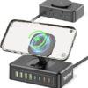 【High Speed Charging Blocks for 4 Devices】With two USB-C ports and two USB-A ports, effortlessly charge your cell phones, tablets, and earphones all at once from a single charger. Connect a single device to charge up to 40W. (The max power of each USB C port is 20W, and the max power of each USB A port is 18W, while charging multiple devices at once, the output power of each port maybe can’t reach their max power)